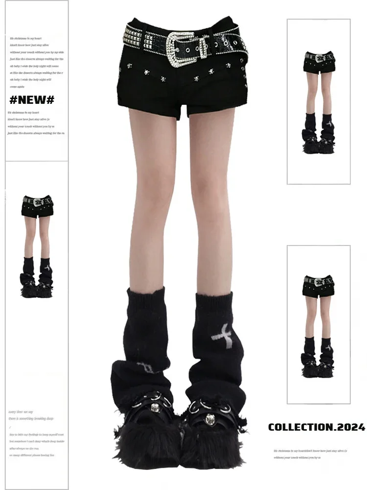 Women's Black Gothic Denim Shorts Vintage High Waist Mini Jeans Shorts Y2k Shorts Pants Harajuku Trashy Emo 2000s Clothes Summer