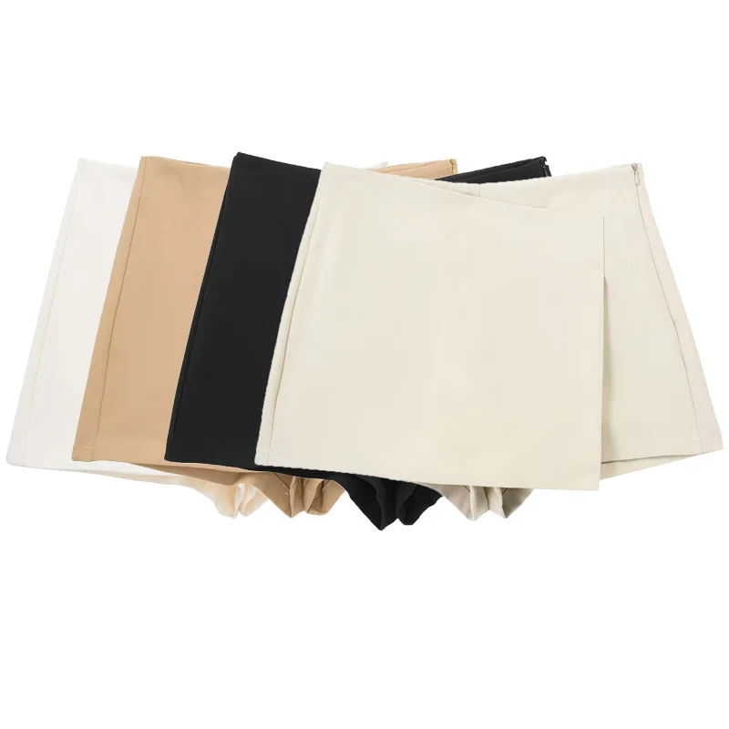 HXAO Short Mujer Casual High waist Mini shorts skirt Women 2024 Beige Khaki Black White Asymmetric Shorts Skirt