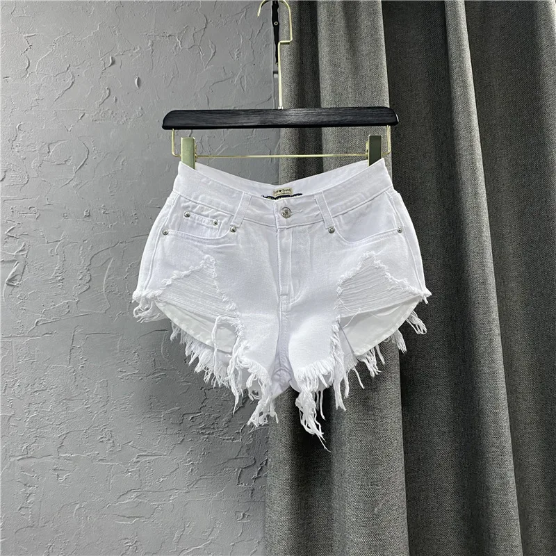 Fashion Low Waist Denim Shorts 2023 New summer Women's Raw Edges Holes White Jean European Style A-line Hot Mini Pants Trend