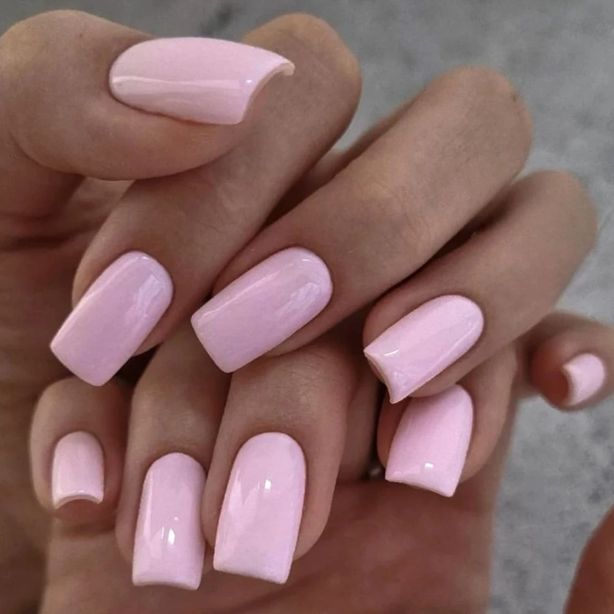 24Pc Short Square French Light Pink Glossy Surface Fashion Simplicity Girls Women Full Coverage Wearable Fake Nail Set  Read more