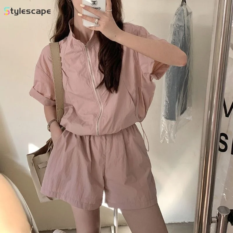 Summer New Chinese Leisure Sports Set Women's 2024 Loose Pink Sunscreen Clothes Light and Thin Shorts Two Piece Set for Woman  Read more