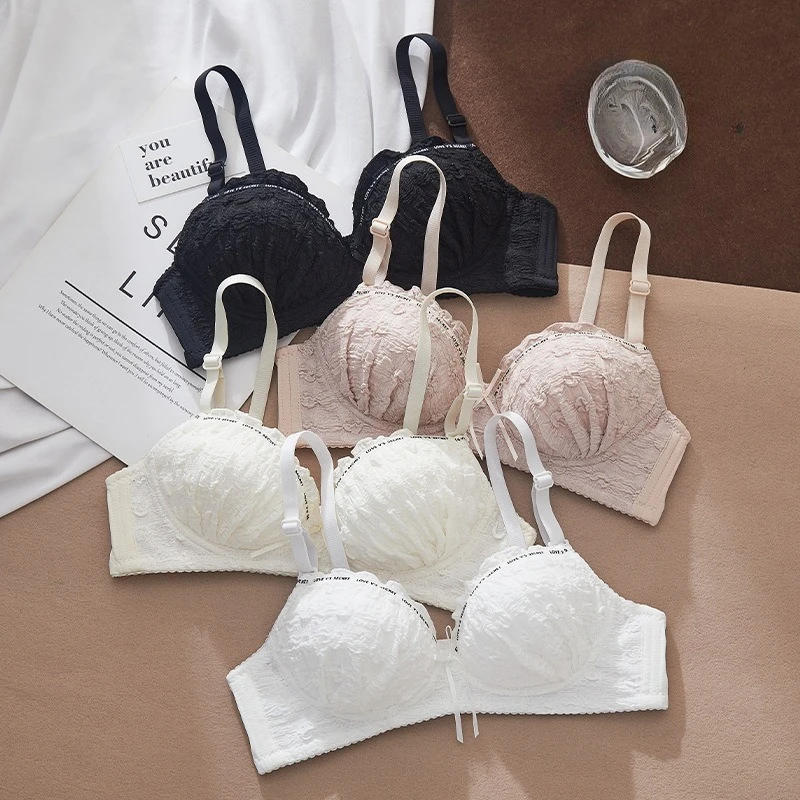 Sexy Princess Style Push Up Lace Bras Padded Wireless Comfortable Adjustable Straps Back Closure for Women Plump Chest