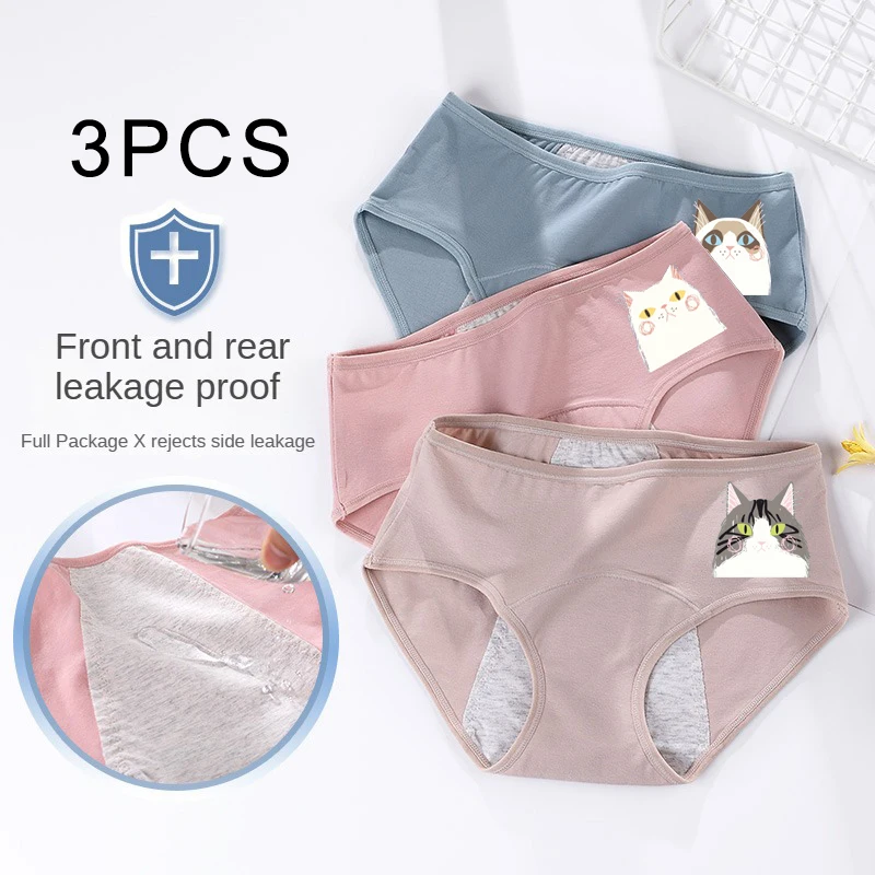 3PCS/set Women's menstrual briefs large flow postpartum water absorption leakproof briefs women's pure cotton menstrual briefs