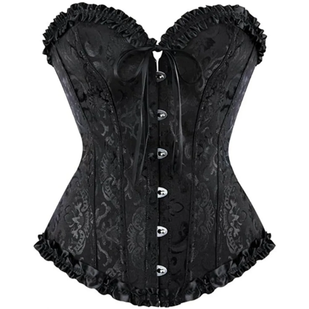 Corset Top Plus Size Women Bustier Overbust Sexy Lace up Floral Lingerie Vintage Gothic Victorian Fashion Black Red DropShipping