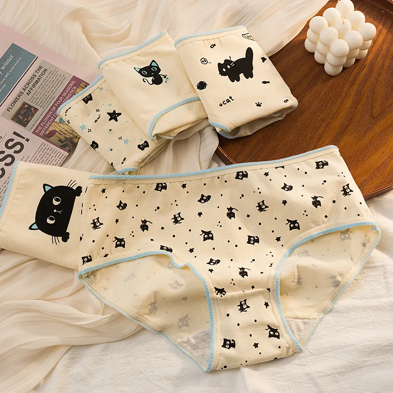 5Pcs Cotton Women's Underwear Cute Black Cat Breathable Briefs Girls Female Panties Ladies Breathable Soft Lingerie M-XL New