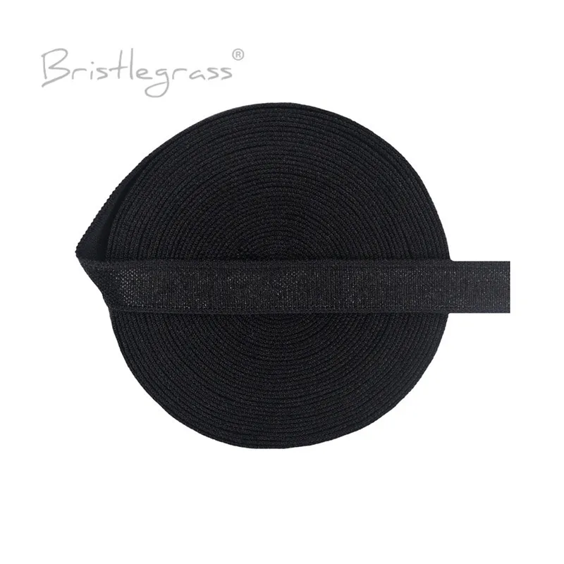 BRISTLEGRASS 5 Yard 3/8" 10mm Black Spandex Satin Band Shiny Non-fold Over Elastic Headband Bra Strap Dress Lace Trim DIY Sewing