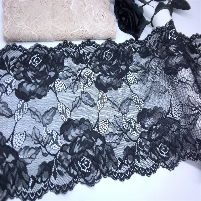 Black Floral Lace Trim IDY Lingerie Lace Material beige Lace Stretchy Ribbon lace Trmmings 23cm 2 Meters/Lot