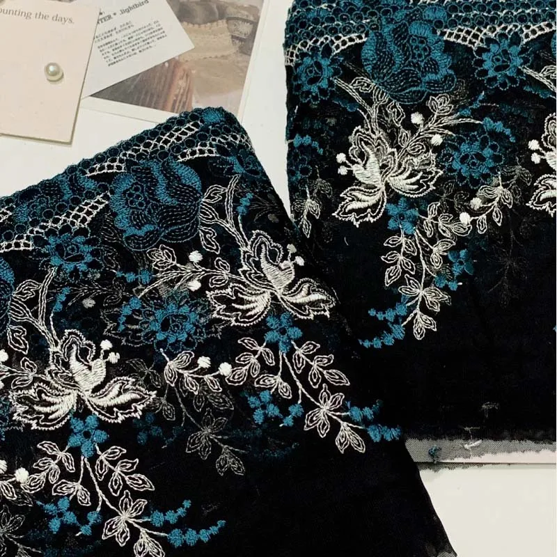 30Yards Floral Embroidered Lace Trim For Sewing Black Green Mesh Accessories Bra Evening Dress Lingerie Underwear Decor