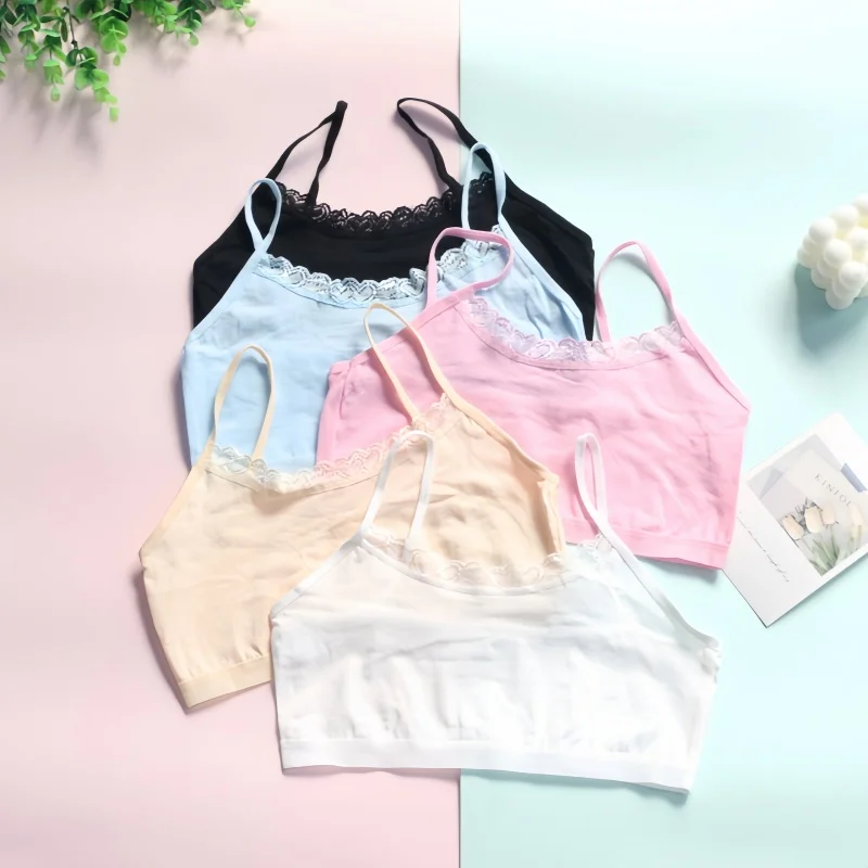 5PC Young Girls Lace Bra Puberty Teenage Soft Cotton Underwear Training Bra Crop Top 8-14years