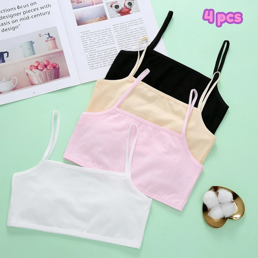4Pcs/Lot Adolescent Girls Brasserie Cotton Wireless Children Breast Care Girl Bra Solid Color Children Underwear Top Bra For Kid
