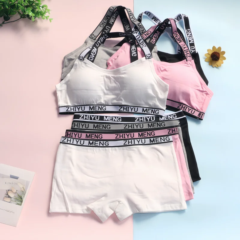 New Teen Girl Training Bras Panties Set Kids Puberty Young Girls Cotton Sport Underwear Student Children Camisole