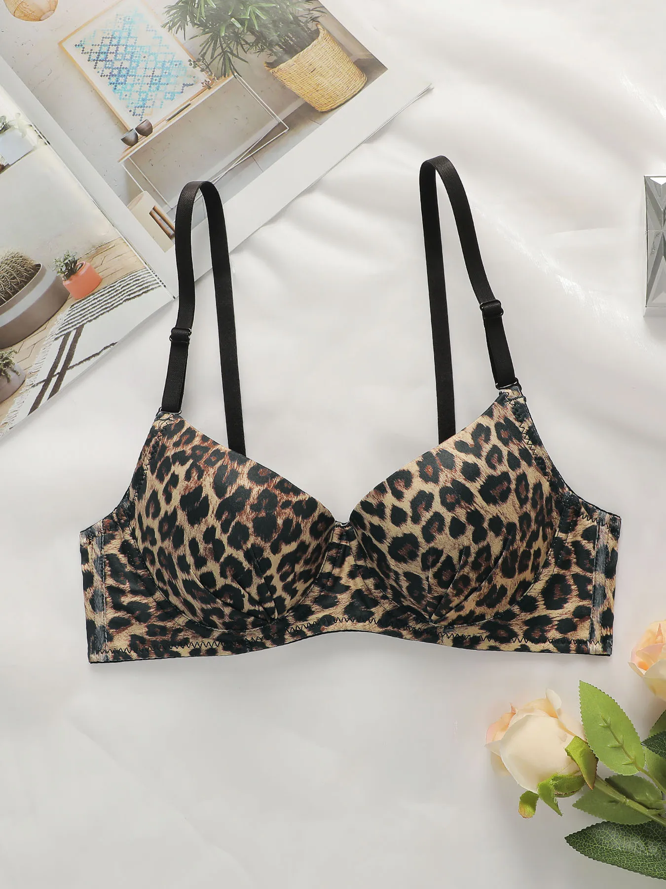 Women's Sexy Bra With Leopard Print and Steel Ring Push Up and Full Coverage Underwear