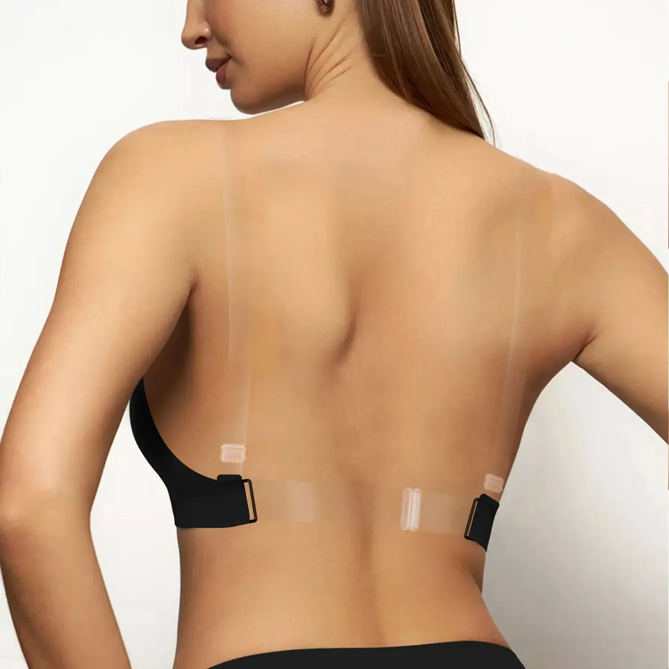 Unlined Backless Bra with Transparent Straps Women Wireless Seamless Everyday Brassiere U-shaped Back Lingerie Inner Wear