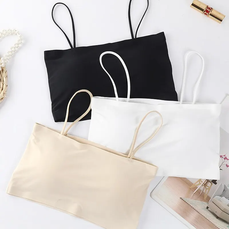Women Crop Top Sexy Bra Seamless Tank Tops 2023 Summer Female White Strap Top Backless Camisole Solid Cropped Camis Clothing