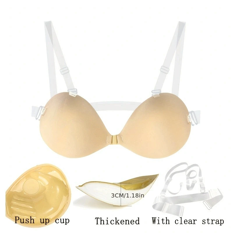 ZXYOUPING Women Invisible Bra Nu Bra Seamless Strapless Push Up Bra Backless Strap Free Size for Wedding Party