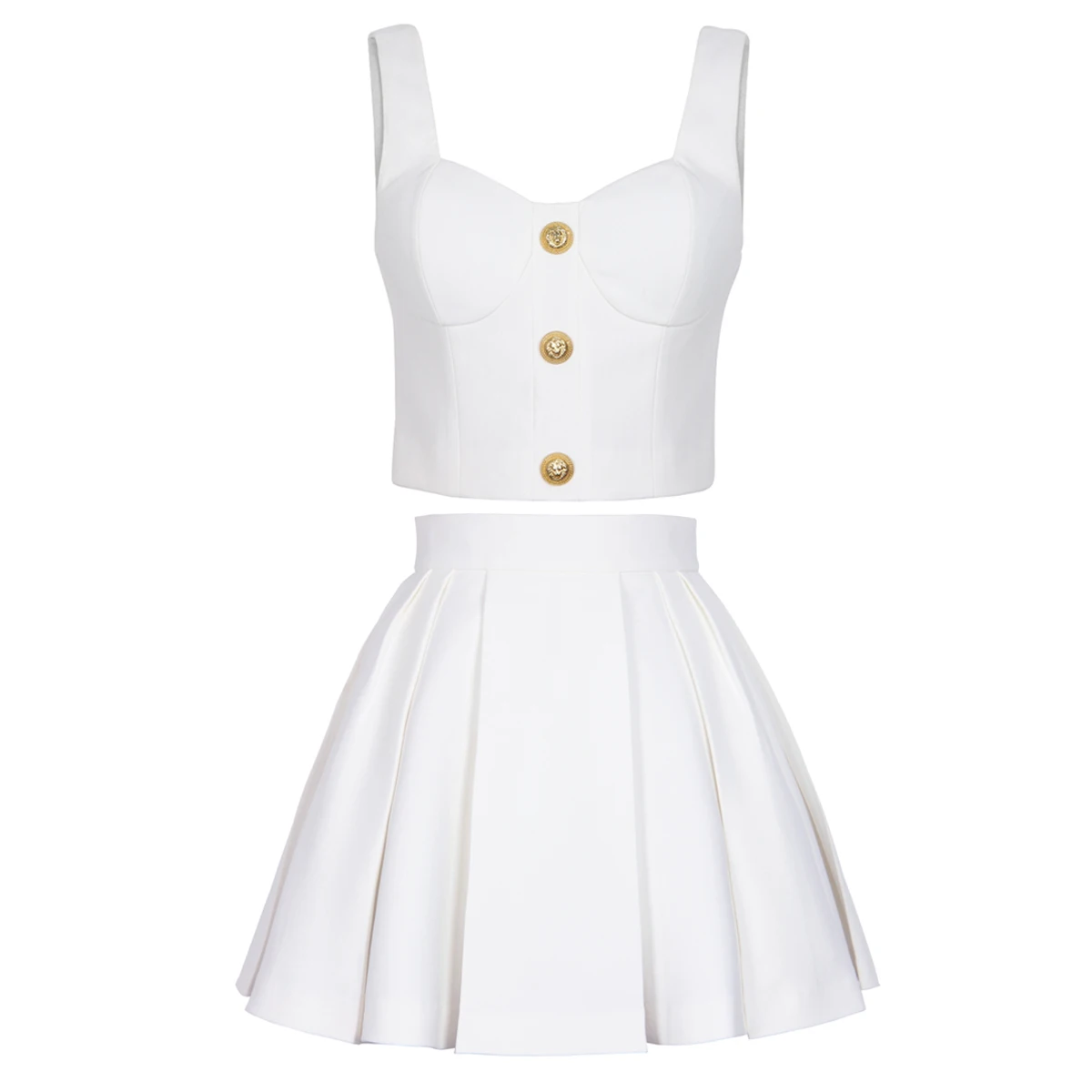 S-XL Three Colors High Quality New Fashion Solid Fit Underwear Zipper Tank Top+Pleated A-line Short Skirt Women's Set