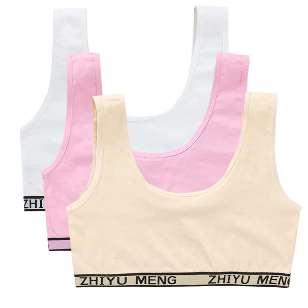 3PCS Teenage Girls Training Bras Vests Puberty Adolesent Students Underwear Brassiere Letters Wireless Children Tube Tank Tops