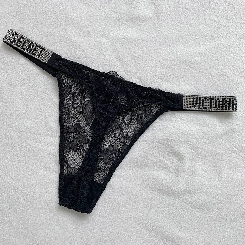 New Satin Letter Rhinestone G-String Women Underwear Sexy Lace Lingerie Low Waist Seamless Panties Panties