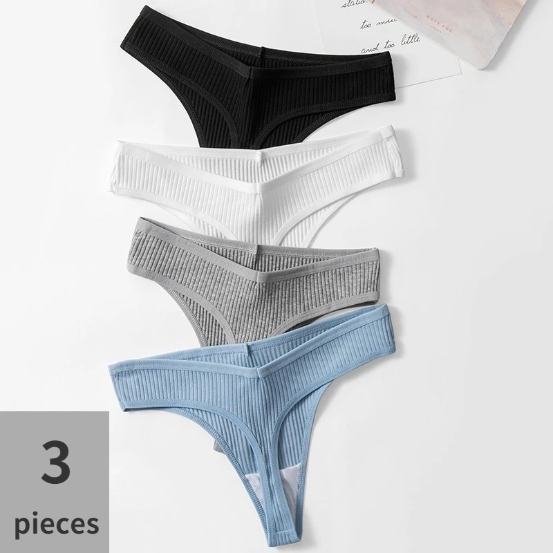 3Pcs/Set Women Sexy Cotton Thongs Solid V-Waist Stripe Lady Panties Breathable G-String Soft Underwear Female Intimates Lingerie  Read more
