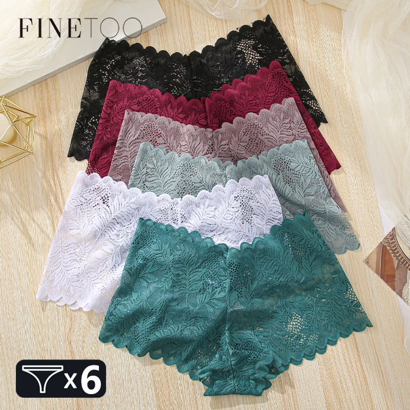 FINETOO 6PCS Women Sexy Lace Boyshort Hollow Out Floral Panties Female Low Waist Transparent Underpants Invisible Lingerie S-XL  Read more