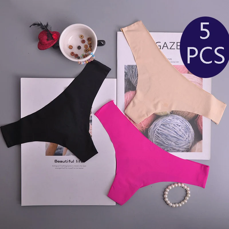 3Pcs/Set Light Soft Seamless Ice Silk Women's Panties Thongs Sexy Bikini T-Back for Woman 2XL Hot Sale Female Underwear Lingerie  Read more