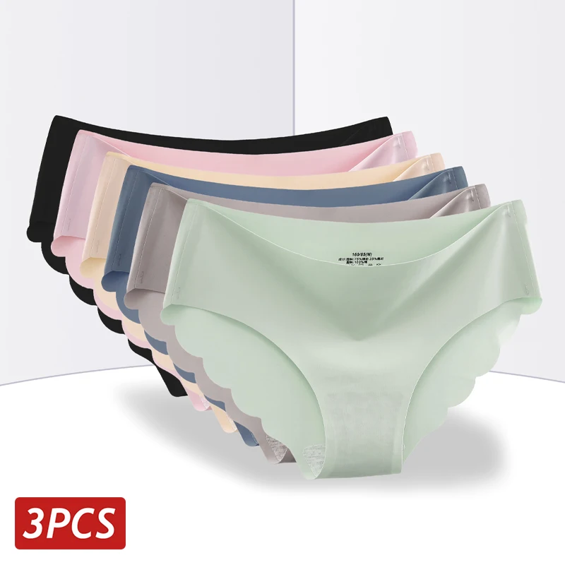 3PCS/Set Ice Silk Seamless Panties Sexy Briefs For Women Comfortable Girl Underwear Female Wave Side Underpants Sexy Lingerie