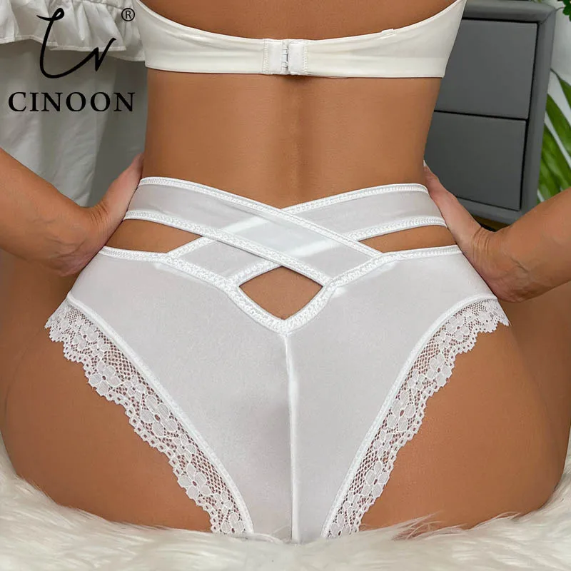 CINOON Sexy Women Panties Ice silk Underwear Low-Waist Brief G String Cross Strap Hollow out Lingerie Comfort Female Underpant
