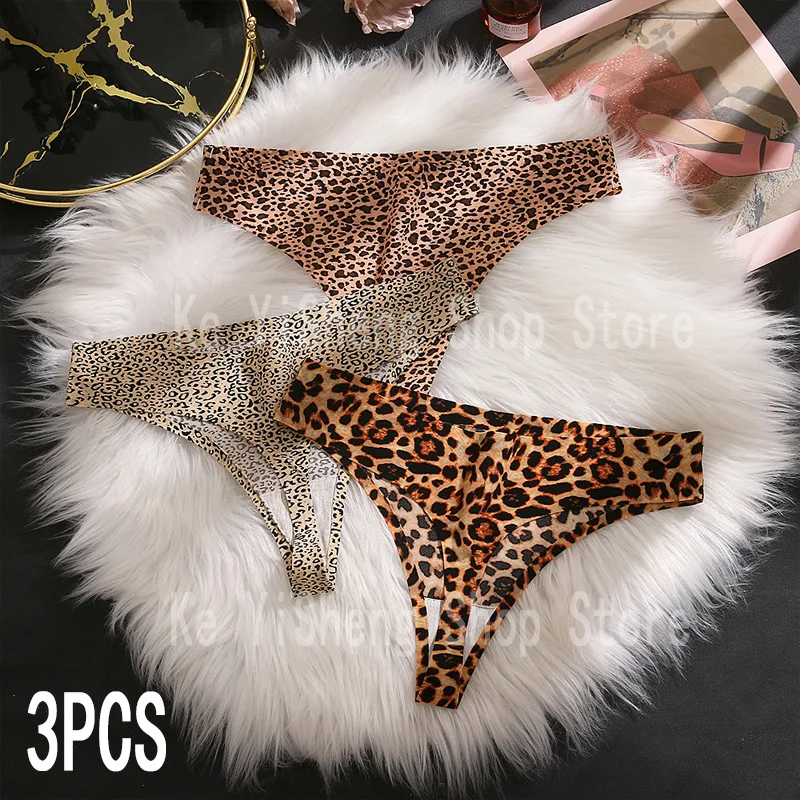 3PCs Women's panties Sexy seamless thong sport breathable elastic T panties women leopard print