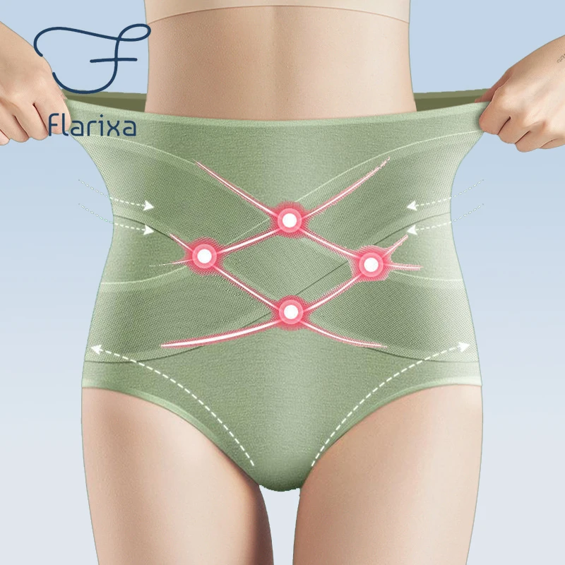 Flarixa Seamless Women High Waist Cotton Panties Cross Tummy Control Underwear Girls Briefs Breathable Solid Color Underpants