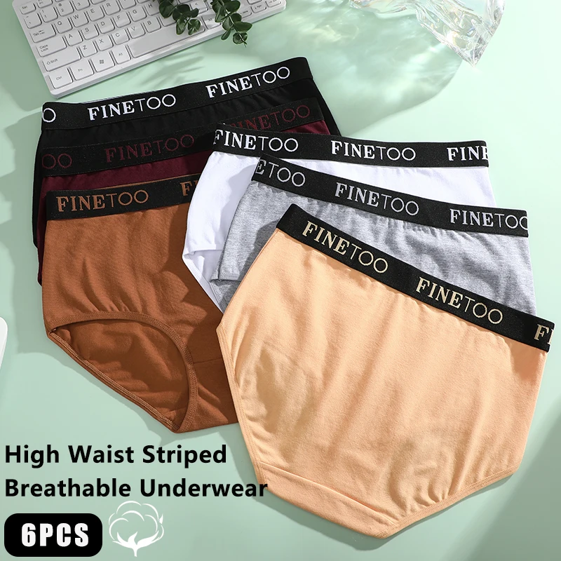 Finetoo 6Pcs/Set Women Cotton Seamless Briefs Women Plus Size Panties Breathable Underwear Female High Waist Soft Lingerie S-XXL