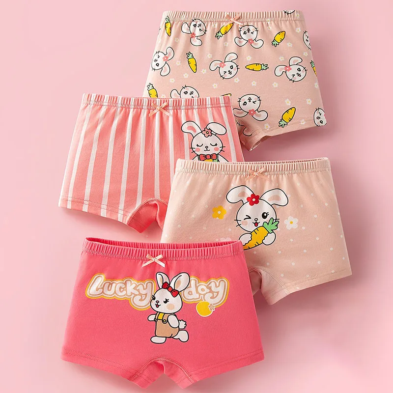 4-Piece Girls Panties High Quality Soft Cotton Children Boxer Shorts Cute Rabbit Cartoon Girls Boyshort Breathable Kid Underwear
