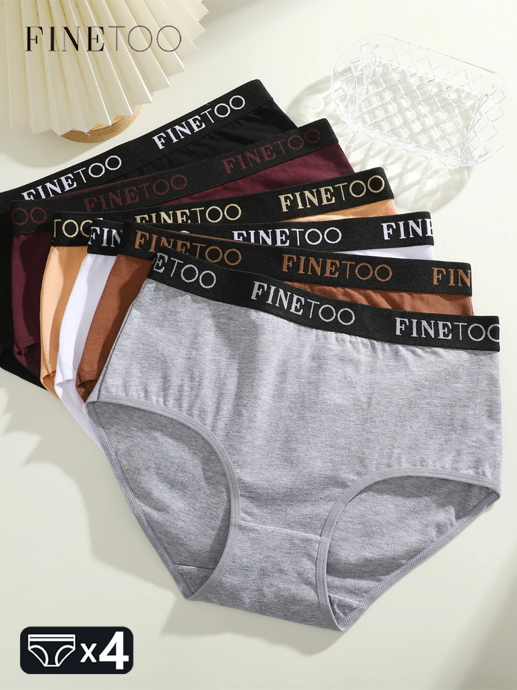 FINETOO 4Pcs Women Panties High Waist Panties Cotton Seamless Underwear Plus Size Breathable Sexy Lingerie S-XXL Comfort Panty