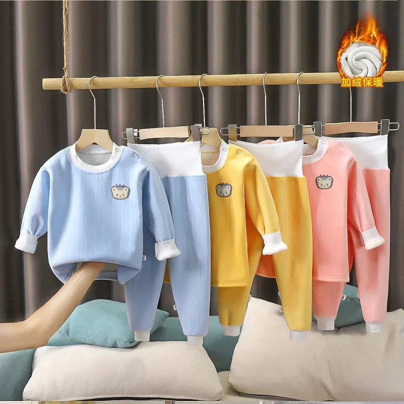 Boys and Girls Warm Underwear Set Thickened Double-sided Plus Fleece Belly Protection Pants Baby Autumn and Winter Home Wear  Read more