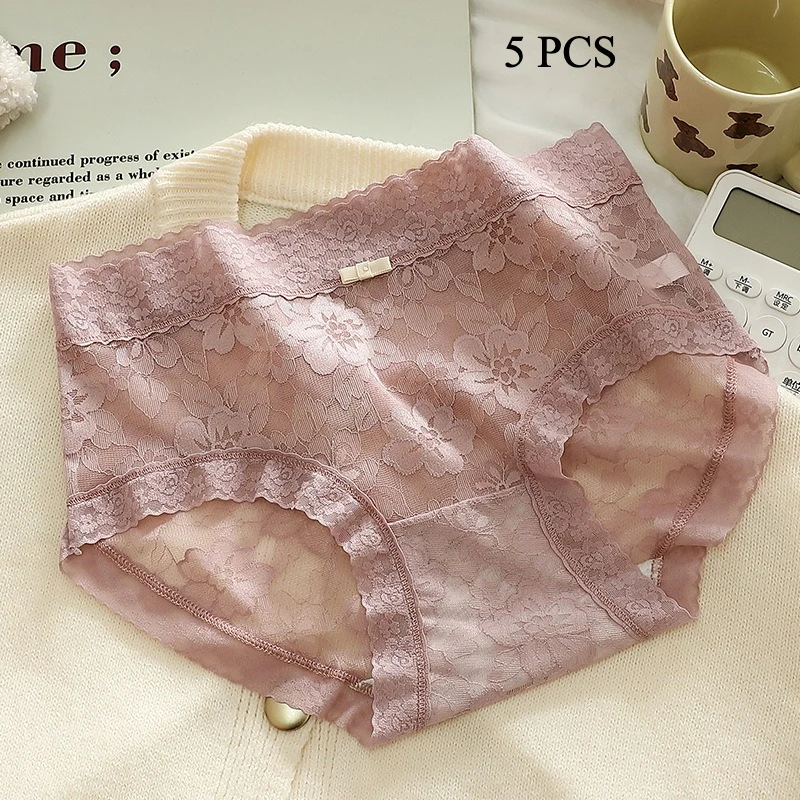 5 Pcs VILIS Summer Lace Panties Women Mid Rise Bow Breathable Ultra Thin Sexy Girls Triangle Underwear Lingerie for Women