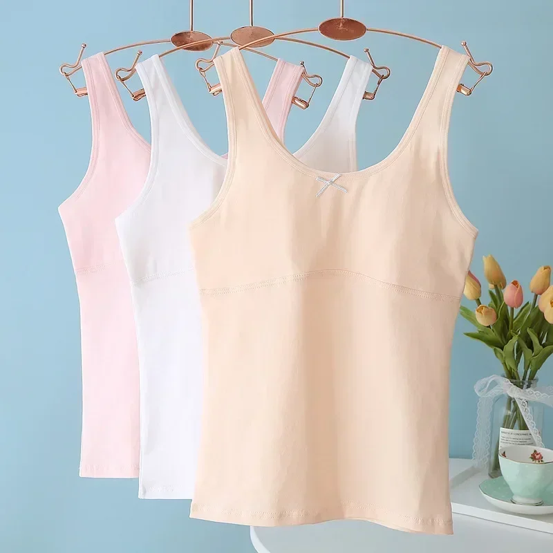 Girls Underwear Kids Cotton Tops 2024 Children's Sleeveless Solid Color Camisoles Breathable Undershirts Teenagers Tank Top