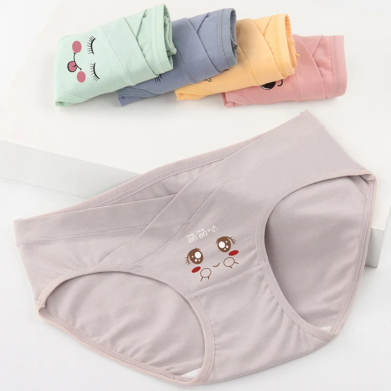 5PCS/Set Plus Size Woman Low-Waisted V-Shaped Women's Panties Cotton Maternity Pregnant Underwear Mother Under Bump Panties