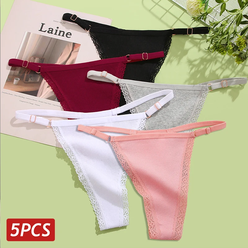 5PCS/Set Sexy Lace Cotton Panties Women's Underwear Female Comfortable Lingerie Adjustable Low Rise Thongs T-Back G-String Pants  Read more