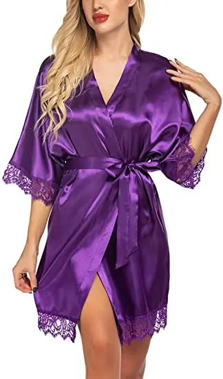 Fashion Women's Summer Mini Kimono Robe Lady Rayon Bath Gown Yukata Nightgown Sleepwear Sleepshirts Pijama Mujer Size M-XL
