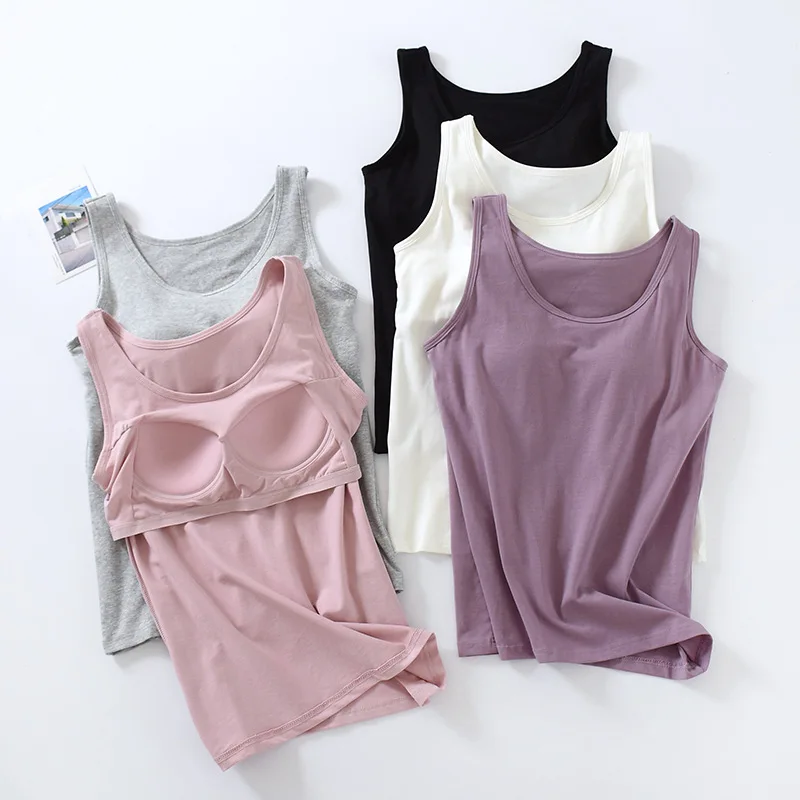 Lingeries For Woman Sleep Shirts New Cotton Sleepwear Tops Chest Pad Casual Bottoming T-shirt Nightwear Vest One Piece Pajamas