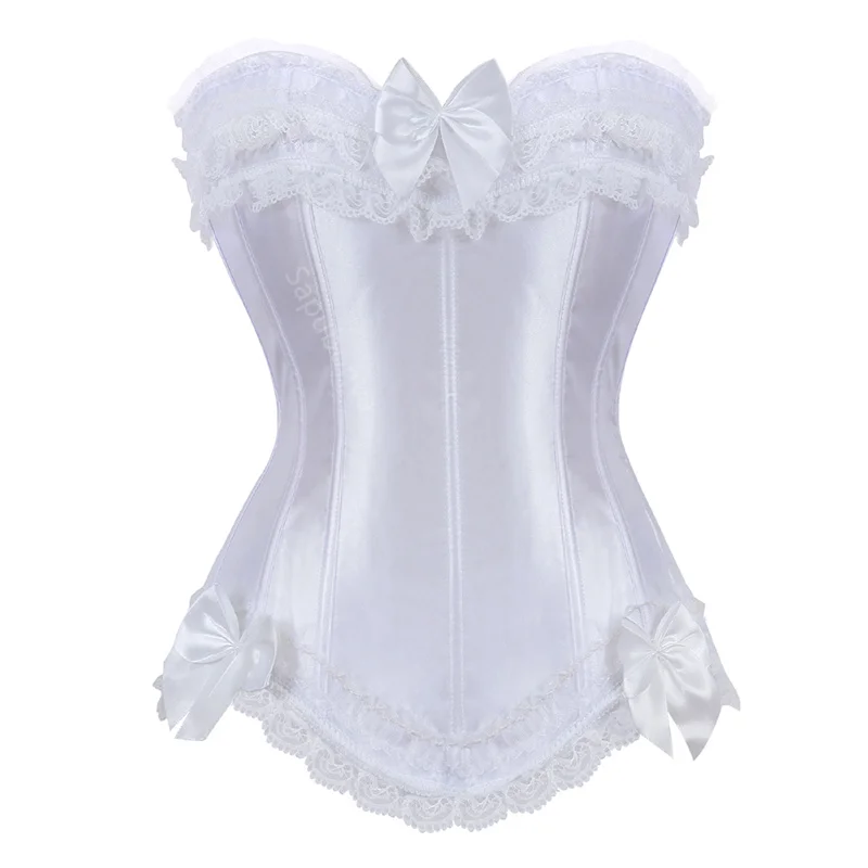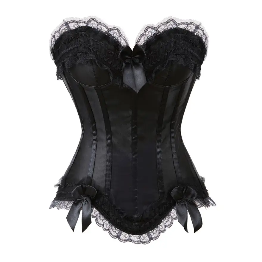 Sexy Satin Overbust Corset Top Lace Bowknot Decorated Clubwear Showgirl Body Shaper Plus Size