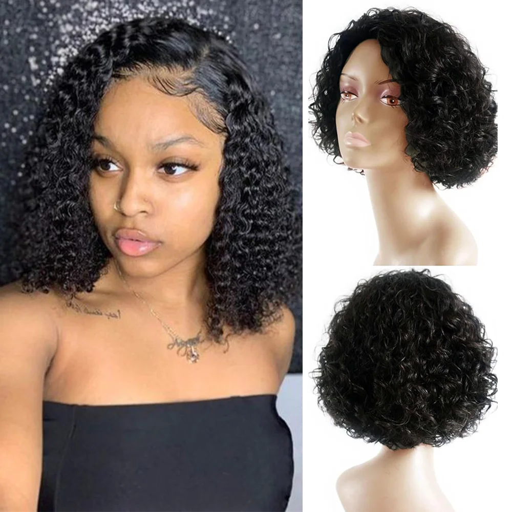 Short Curly 180 Density Pre-Plucked Side Part Short Bob 13*4 HD Lace Frontal Brazilian Virgin Human Hair Wigs For Black Woman