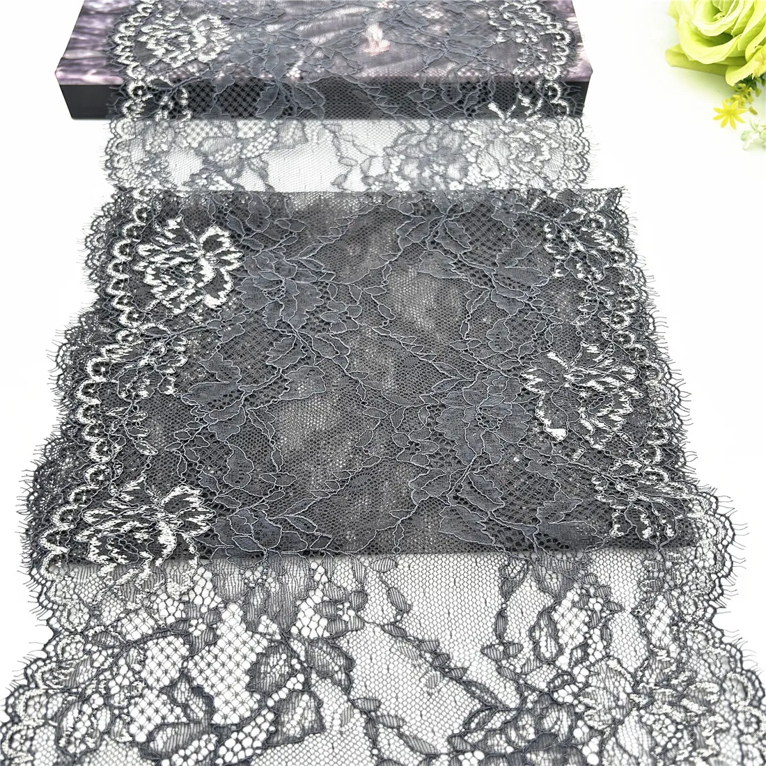 5y/lot Width 23cm Grey Silver Eyelash Lace Trim For Spring Clothes Skirt Hem Underwear Sewing Craft DIY Apparel Fabrics Lace
