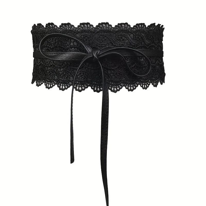 Lace Waist Belt Bow Tie Wrap Around Soft PU Leather Wide Girdle Boho Corset For Dresses