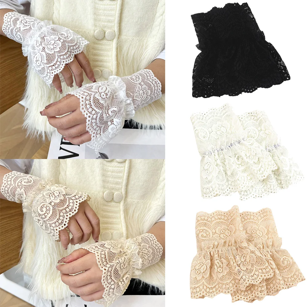 Lace Arm Cover Women Solid Color Elbow Sleeve Cuff Fake Sleeve Arm Covers White Black Nude Sun Protection Clothes Decoration  Read more