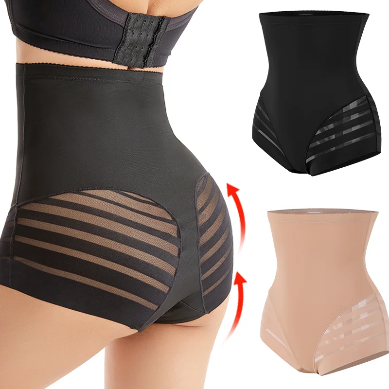 Women Strip Lace Shaping Panties Seamless High Waist Body Shaper Butt Lifter Underpant Tummy Control Non-rolling Underwear
