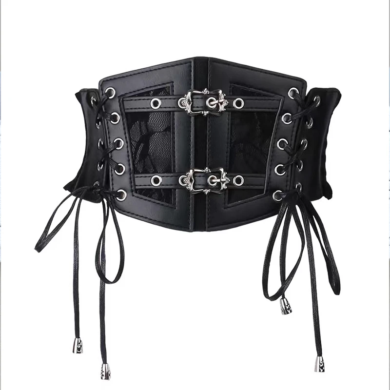 Lace straps, leather waist closure, women's decoration, shaping body, waist closure, black European and American vintage metal b