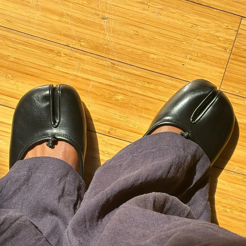 IPPEUM Tabis Shoes Black Ballets Flats Split Toe Shoes Women Mary Janes Plus Size 44 Dress Loafers Ballerina Zapato Mujer