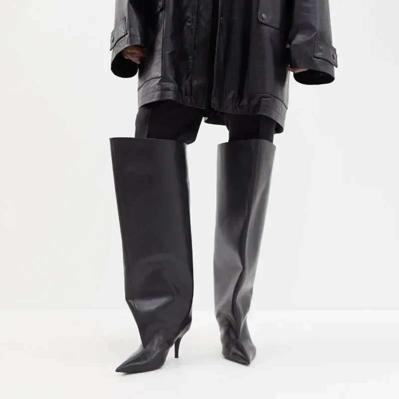 European and American New Pointed Big Cap Knee Length Boots Fashion Show Slender High Heel Sleeve 45 Medium Cap Women's Boots