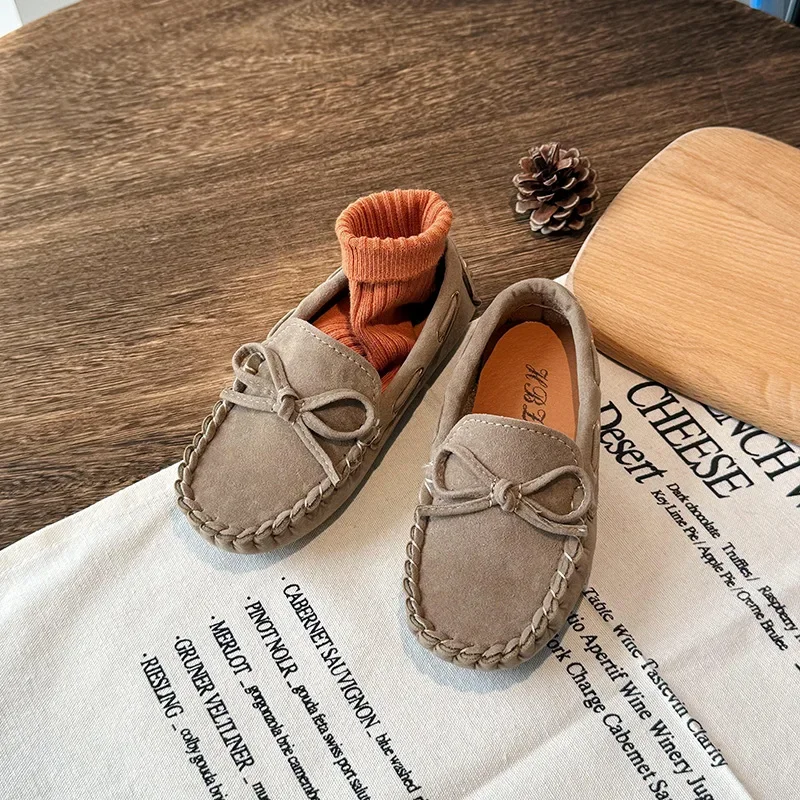 Children Casual Flats 2024 New Fabric Moccasin with Simple Bow Girls Minimalist Style Princess Shoes Anti Slip Wear-resistant