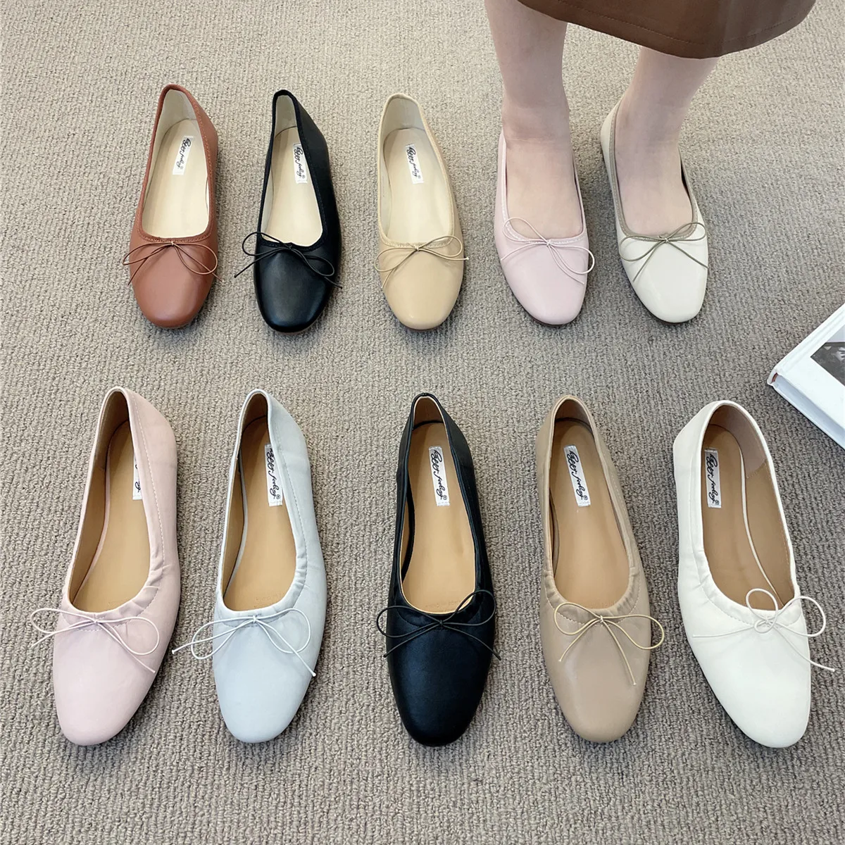 Bailamos Fashion Bow Tie Flats Ballet Shoes Women Female Ballet Round Toe Shallow Cut Ballerina Soft Moccasin Dress Shoes Zapato